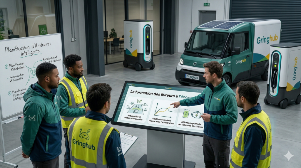 Vos livreurs participent à la formation et repartent avec leur certificat d'éco-conduite Gring Hub Academy.